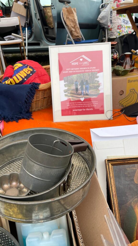 Op 1 juni heeft het Let’s go team ondanks de kou en de modder vanwege de vele regenachtige dagen deelgenomen aan een kofferbak verkoop. Helaas waren er niet veel kopers, maar was het wel weer een kans om Hope for Life onder de aandacht te brengen!