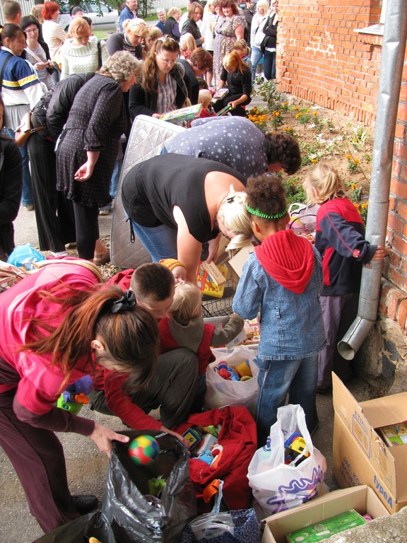 Eind augustus hebben we een kledingdag gehouden. Voor de eerste keer een hele dag en het was best vermoeiend, maar meer dan de moeite waard! Om kwart voor negen kwamen de eerste mensen al aanlopen terwijl de deuren pas om 10 uur opengingen. Er stond een flinke rij, maar er is geen wanklank gevallen. Iedereen wachtte geduldig tot het hun beurt was om naar binnen te mogen. Er waren weer veel helpers en alles verliep goed. Het speelgoed was in korte tijd weg en het was ontroerend om al die blije gezichten te zien. Deze keer mochten de mensen 8 items kleding meenemen een 1 paar schoenen. Na afloop was ik bijna in shock: er zijn van alle dozen nog maar zo’n 25 over! We hebben tevens nog zo’n 150 rugzakken om uit te delen, dit hopen we op korte termijn te kunnen doen. Ze zijn allemaal al gesorteerd, nu nog de juiste tas bij de juiste naam en dan kan dit project beginnen. Een reden om dankbaar te zijn, zoveel mensen kunnen helpen dankzij de inzet van zoveel mensen! Deze dag hebben we wederom ervaren dat we de mensen in Smiltene tot zegen kunnen zijn omdat God zo rijkelijk heeft voorzien! Ik weet dat God zorg draagt voor Zijn kinderen en wat een voorrecht om dit met elkaar te mogen delen!