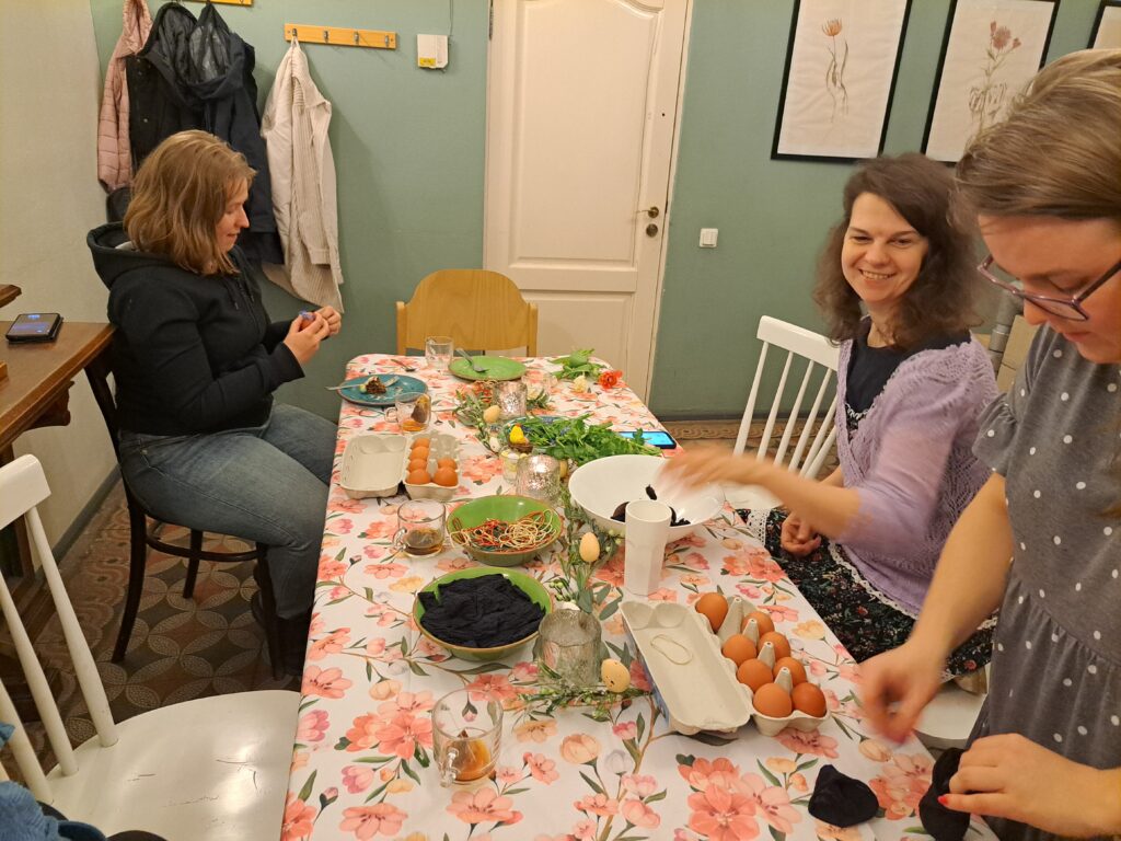 Begin april organiseerde en plande het WOL-team een speciaal Paascafé. Het was een fijne tijd om samen te genieten van een paasmaaltijd, aanbiddingsliederen te zingen, het Mattheüs-verslag over Jezus’ dood en opstanding te lezen en te bespreken, en eieren te kleuren op de traditionele Letse manier. De vrouwen die waren gekomen genoten echt.