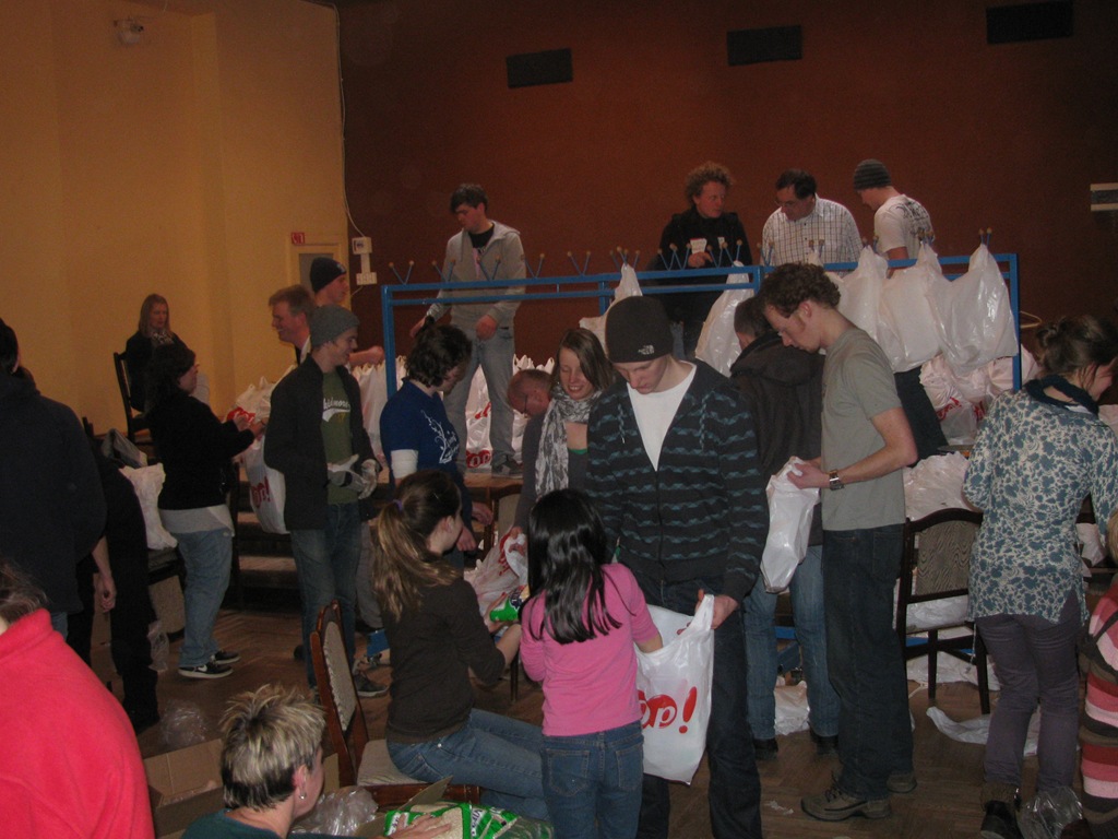 De voedselpakketten ( totaal 1521 foodbags en sweet bags) zijn op woensdag, donderdag, vrijdag en zaterdagmorgen uitgedeeld. Het social department had zo’n 800 huishoudens doorgegeven waar we een voedselpakket mochten bezorgen en er zijn 699 huizen bezocht. We zijn in teams van 4 á 5 mensen ingedeeld, elk team had een Let(se) om te vertalen. Mijn groep bestond uit Dace (Letland), Margret (Duitsland), Erik (Estland) en mijn persoontje. We kenden elkaar niet maar we hebben echt mogen ervaren dat we als team op pad zijn geweest. (niet iedereen die op onze lijst stond was thuis, maar alle pakketten zijn/zullen worden afgeleverd). Zo bijzonder hoe gastvrij we in de meeste huizen werden ontvangen. Velen verontschuldigden zich dat ze ons niets konden aanbieden, maar daar kwamen wij niet voor. Wij wilden hén iets aanbieden: het voedselpakket en daarnaast Gods liefde voor hen! Bij diverse mensen hebben wij mogen bidden: voor vrede in hun hart, voor een baan, voor de gezondheid en ook zijn wij getuige geweest dat mensen hun leven aan Jezus hebben gegeven.